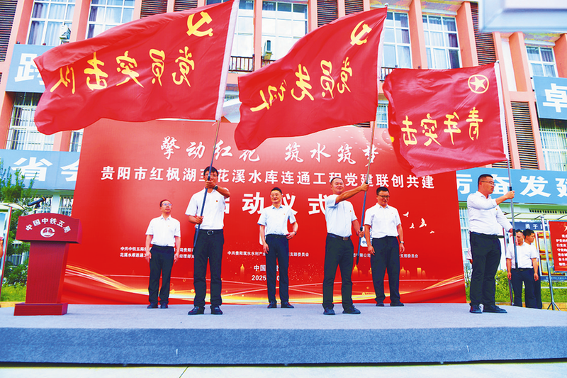 10月14日,“擎动红花 筑水筑梦”——贵阳市红枫湖至花溪水库连通工程党建联创共建启动仪式在中铁五局贵州公司红花连通项目举行。贵阳水务环境集团、中铁五局贵州公司、中铁一局一公司共同签署《党建联建协议书》,旨在实现“共学政策理论、共解工程难题、共推技术创新”目标,以高质量党建推动工程高质量建设。王军毅 摄