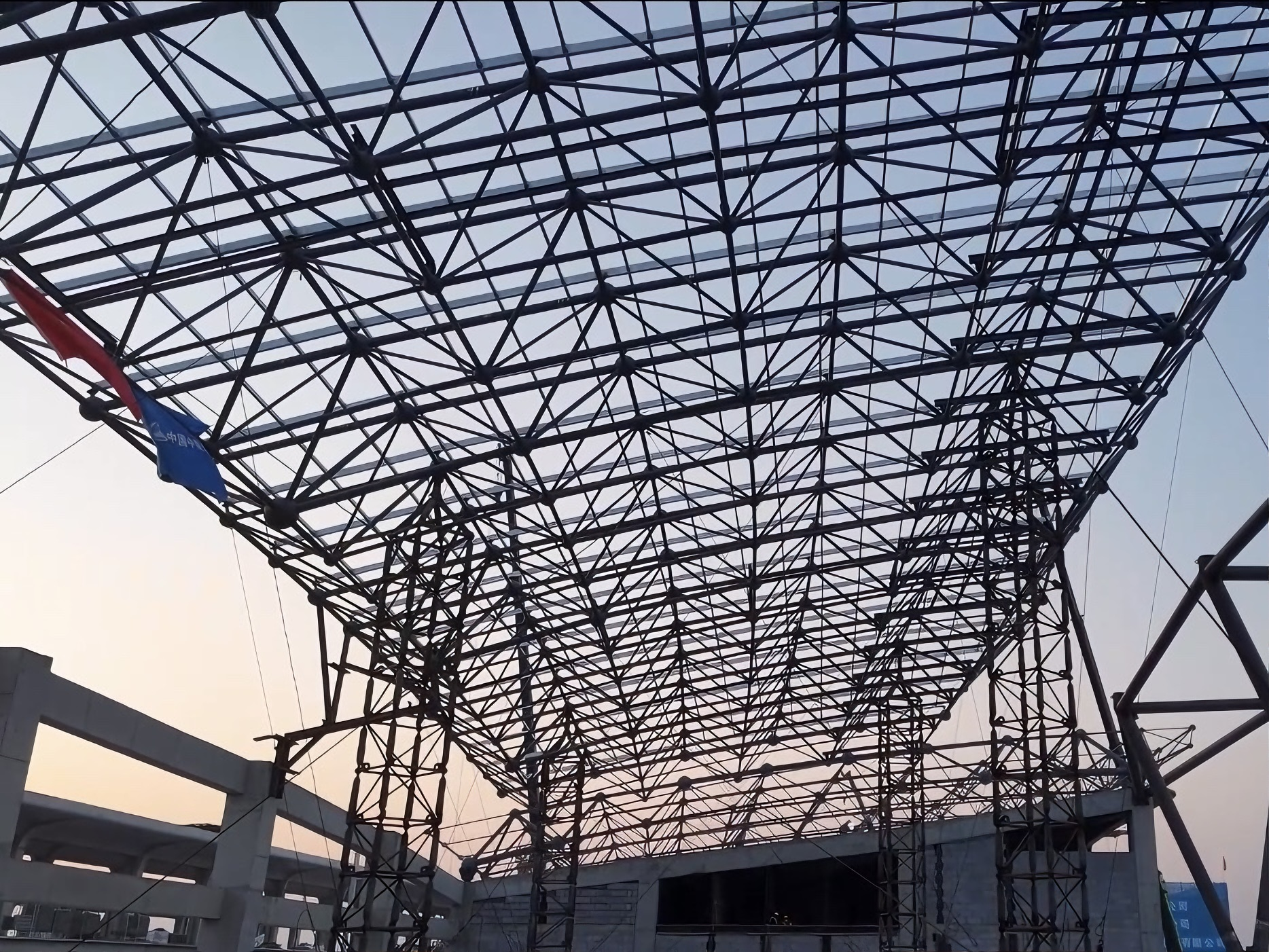 渤海新区站钢网架结构轴线尺寸长58.8米、宽36.4米,网架面积1822.8平方米。黄骅新站网架结构轴线尺寸长星空app官网下载手机版苹果版米、宽25.2米,网架面积2797.2平方米。两处钢网架均为正放四角锥网架,节点为焊接球,采用弹性球形钢支座。