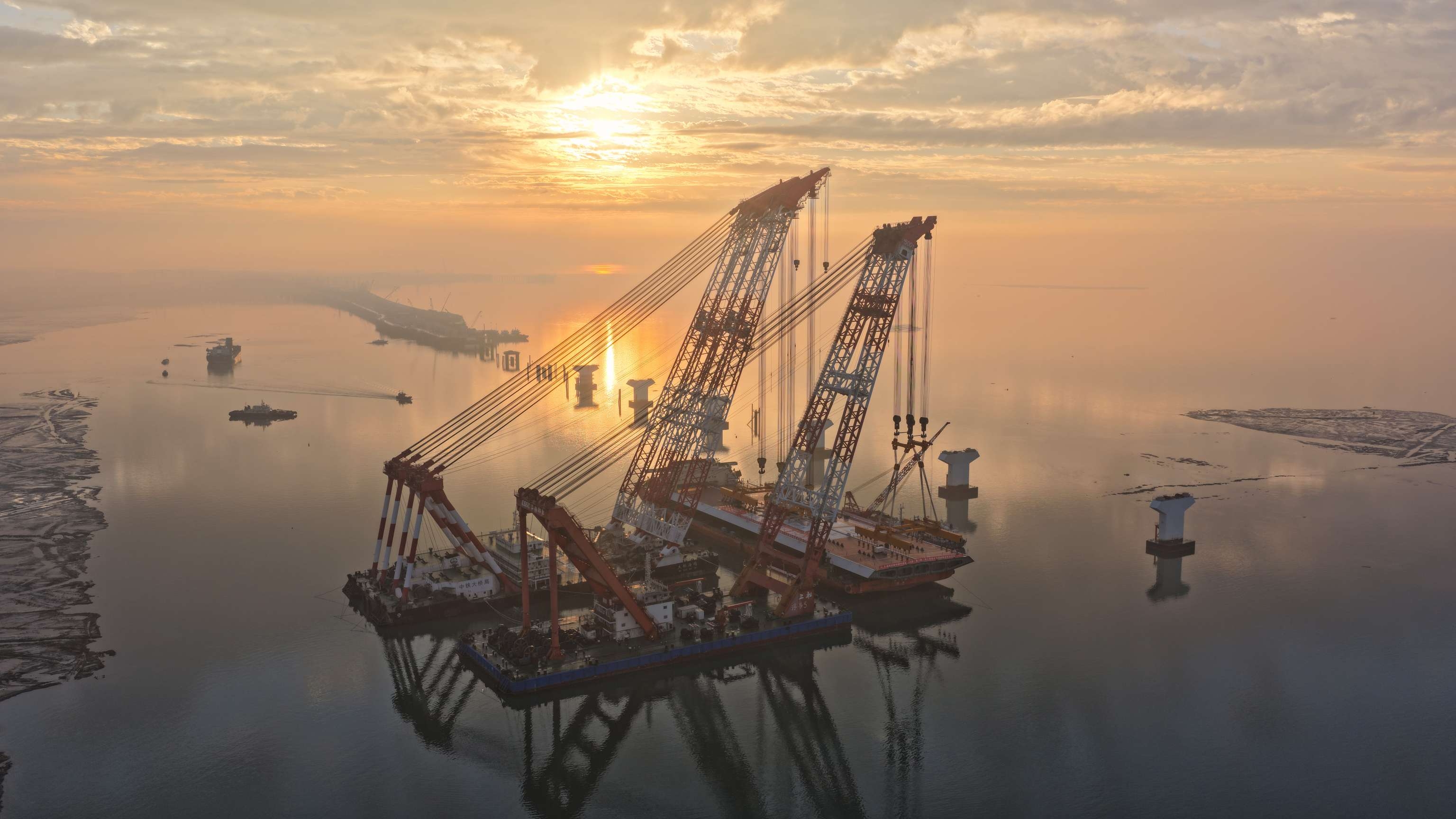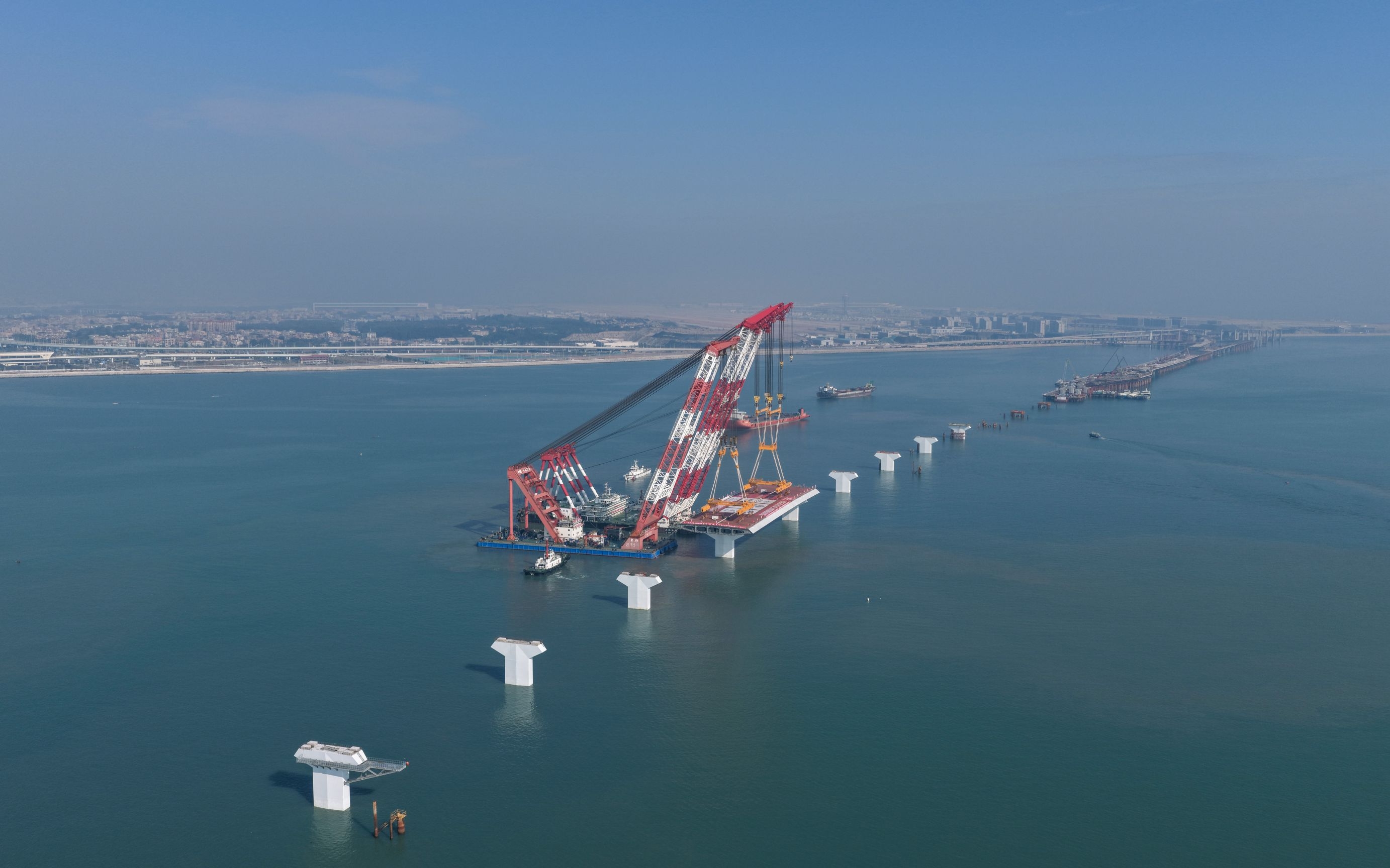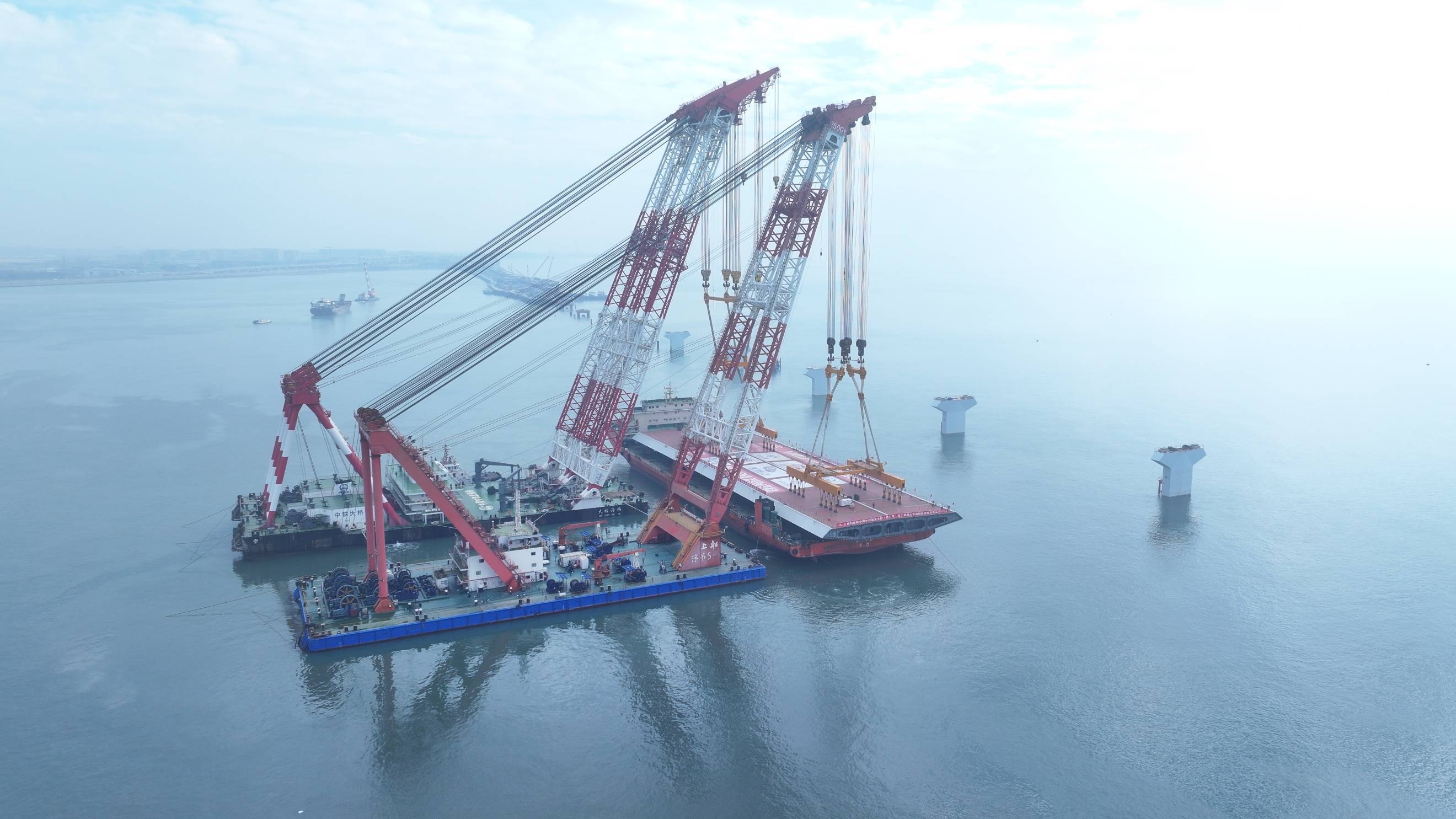 【视频】中铁大桥局厦金大桥(厦门段)海上首榀钢箱梁成功架设——