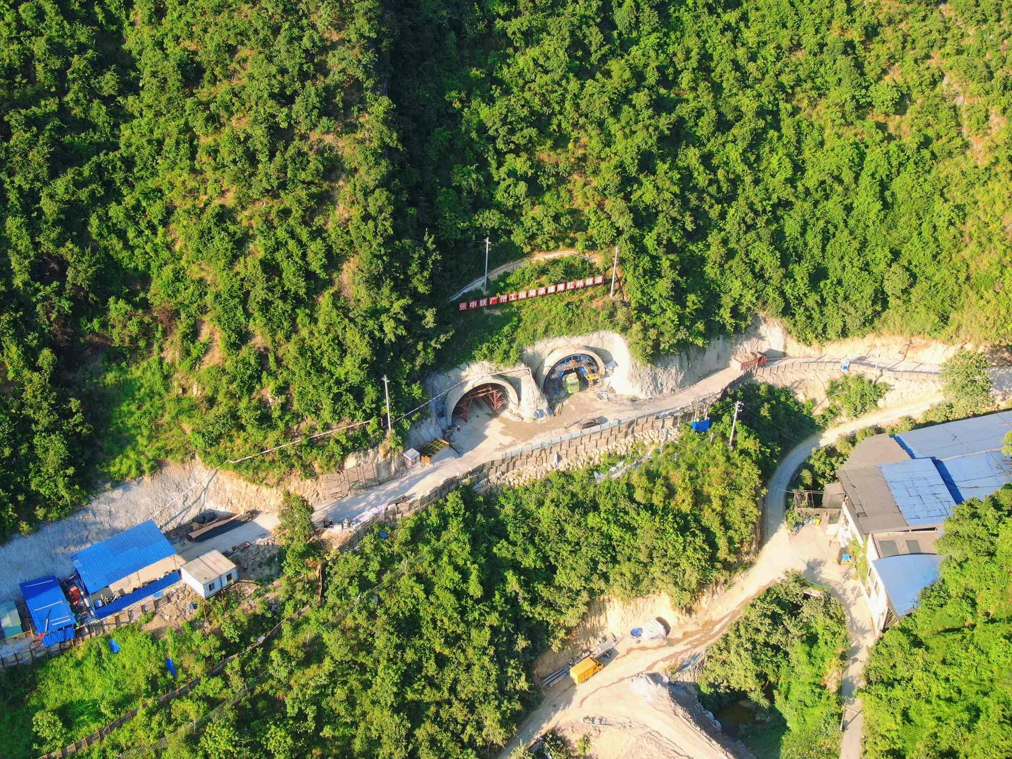 青杠林隧道是全线控制性工程之一,左洞全长626米、右洞全长620米,最大埋深约120米,局部最浅埋深约3米,属于典型的分离式较小净距隧道,沿线溶腔发育、地质构造复杂,生态环保要求高,围岩变形控制难度大。施工过程中,项目团队采用地质雷达、超前钻探等技术精准探明地质条件,动态优化施工方案;应用“管棚+小导管注浆+型钢拱架”联合支护体系,克服浅埋段和溶腔密集区施工难题;引入隧道施工智能监控系统,保障隧道开挖、初期支护、出渣与二次衬砌等工序安全高效衔接。