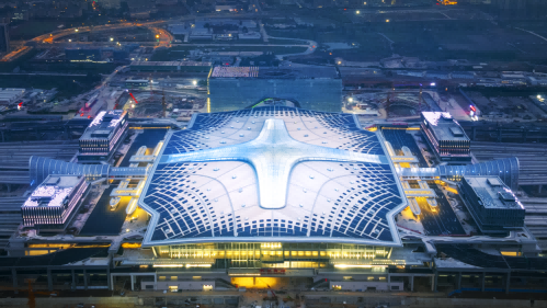 创新攻坚的故事在每一个工地延续。南昌东站,首创三联拱屋盖累计滑移施工,实现大跨度屋顶的高效安装;合肥西站,成为全国首座采用“空心楼盖结构”的新建高铁站,显著减轻结构自重;深圳机场东站,创新应用“桩柱一体化逆作节点”技术,实现结构安全与施工效率的双赢。