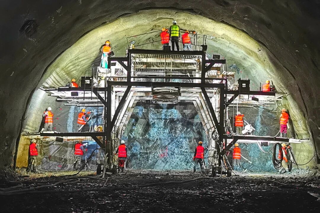 在衬砌养护方面,工人们联系厂家改进喷淋养护技术,形成了台车尾部喷淋支架和自动养护喷淋台架、雾炮机相结合的喷淋体系,在实现绿色施工的同时保证了二衬内实外美。此外,该项目还积极开展修旧利废,通过对老旧衬砌台车进行技术改造,2025年上半年累计节约成本500余万元。“这些金点子都来自我们一线工人的实践。”攻坚小组骨干张名杨自豪地说,“当我们看到自己的智慧能转化为实实在在的效益和价值时,那种成就感无法形容。”