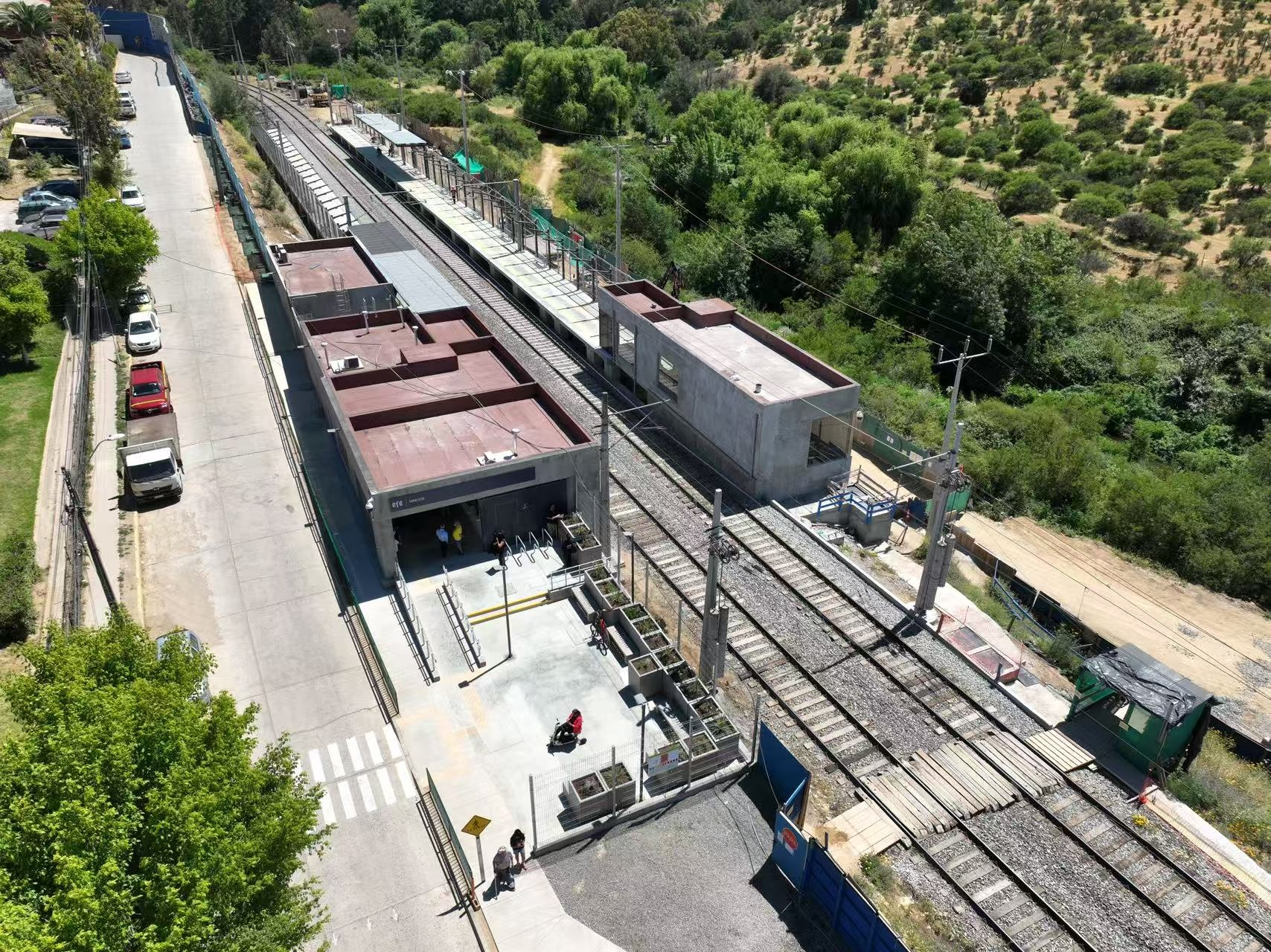 The Valencia Station project is located in Quilpué, Valparaíso Province, central Chile, with a construction length of 1,160 meters. The project includes the construction of a new station building, interior finishing, mechanical and electrical installation, as well as track reconstruction, overhead catenary system upgrades, and the renovation of medium- and high-voltage power and communication signal pipelines. It also features the construction of a bus transfer hub to achieve efficient connectivity with the metro system.